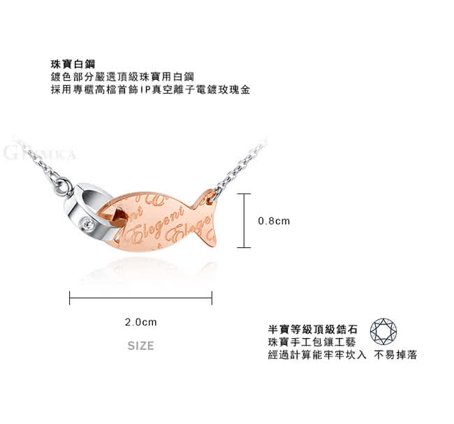 【GIUMKA】Elegent 魚 珠寶白鋼鋯石項鍊 名媛淑女款 MN5138-2(玫金白鋯) 評價